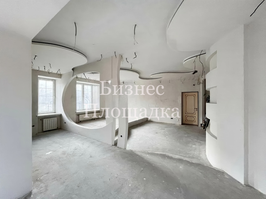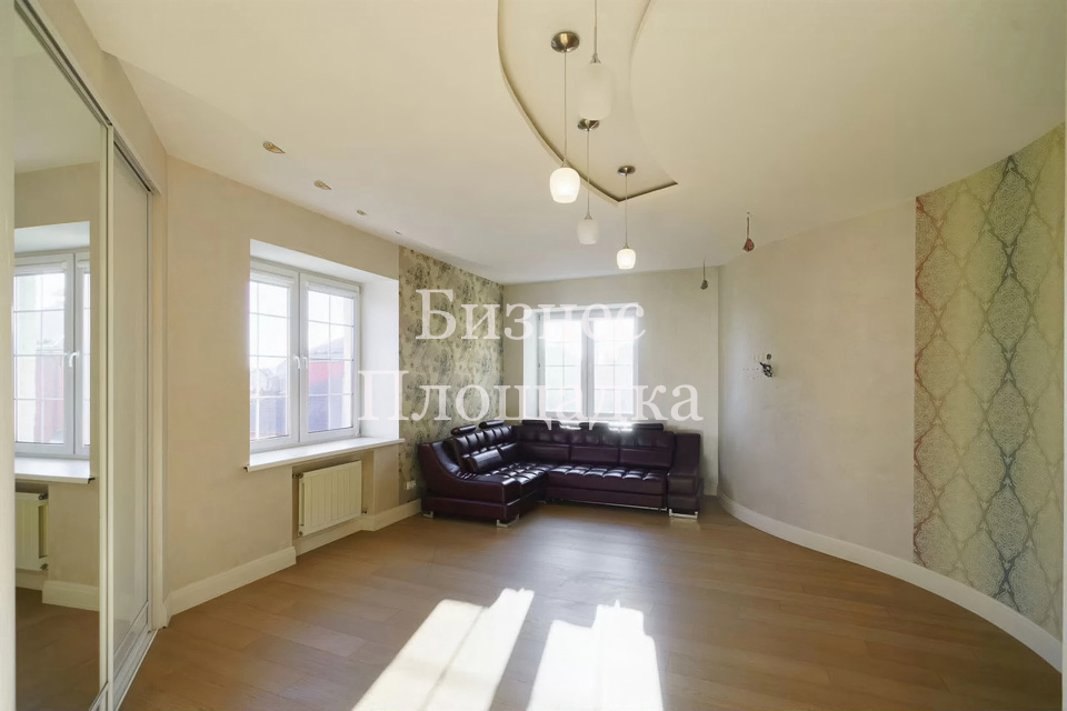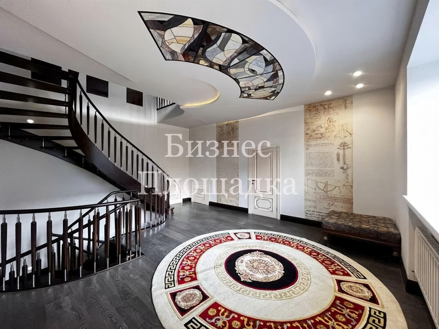 - помещение свободного назначения - в пред чистовой отделки, имеет уникальное расположение с обзорными окнами на улицу, эркером с витражными окнами, на полу стяжка, стены оштукатурены под обои или покраску, потолок многоуровневый ГКЛ с разводкой проводки, дверь из массива фирмы "Александрийский двери".Мансардный этаж:- холл мансардной этажа - на полу уложен ламинат, стены оклеены обоями, потолок из ГКЛ с точечными светильниками и люстрами, нишей с подсветкой закрытой витражом выполненной техникой Тиффани;