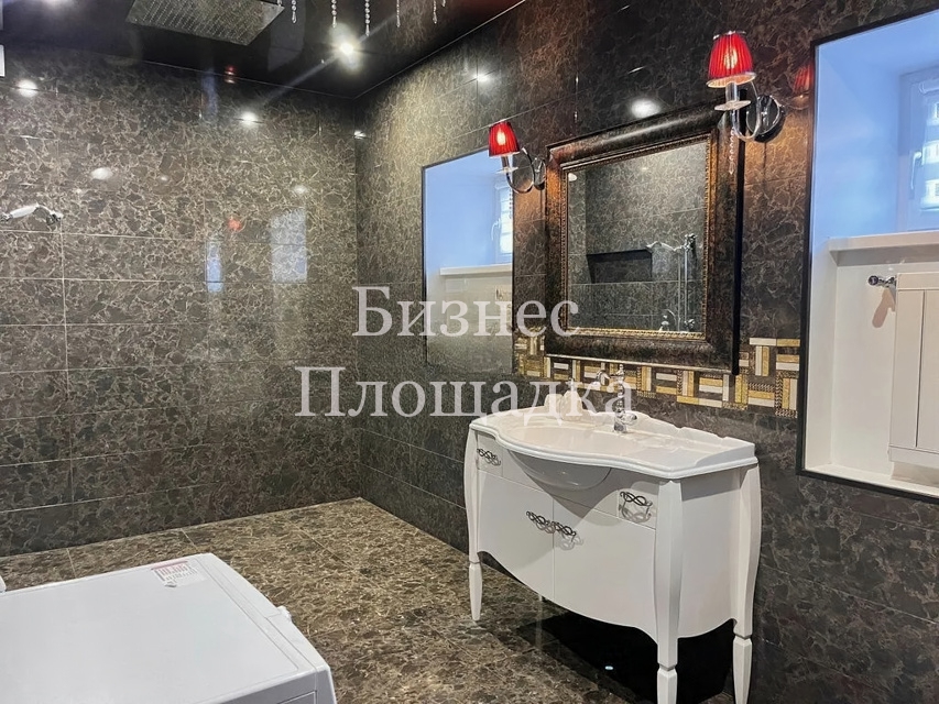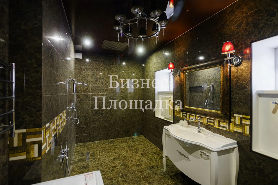 - помещение свободного назначения, проектировалось как домашний кинотеатр, на полу уложен мягкий ковролин, стены оклеены обоями, потолок из ГКЛ с точечными светильниками.Цокольный этаж:- Спа. комплекс - в пред чистовой отделки, с залитой и оборудованной инженерными системами чашей бассейна и джакузи, выделенными комнатами для парной, душевой, сан. узлом, комнатой отдыха и инженерного обеспечения, на полу стяжка, стены оштукатурены под покраску/плитку, система вентиляции.- Лестница между этажами выполнена из массива красного дерева.