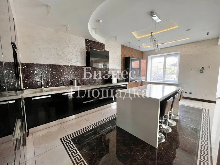 1й этаж:- прихожая - оборудована гардеробная для верхней одежды, стены оштукатурены декоративной штукатуркой/окрашены, на полу уложен итальянский керамогранит Vеrsасе, потолок из ГКЛ с со светодиодной подсветкой нишами для монтажа витражей, точечными светильниками, декоративной хрустальной люстрой;- гостиная совмещенная с кухней, оборудована встроенной кухней с искусственной каменной столешницей, встроенной бытовой техникой, мягкой мебелью, камином голландской фирмы Воlеy, стены оштукатурены декоративной штукатуркой/окрашены, на полу уложен итальянский керамогранит Vеrsасе, потолок из ГКЛ с со светодиодной подсветкой ниш для монтажа витражей, точечными светильниками, декоративными люстрами и светильниками;- сан. узел, оборудован шкафами для хранения, раковиной с тумбочкой перед зеркалом с подсветкой, сан. узлом с гигиеническим душем, разводкой для стиральной машины, тропическим душем в полотке, на полу уложен керамогранит, стены отделаны кафельной плиткой, потолок натяжной со светодиодными светильниками и люстрой, дверь из массива фирмы "Александрийский двери";