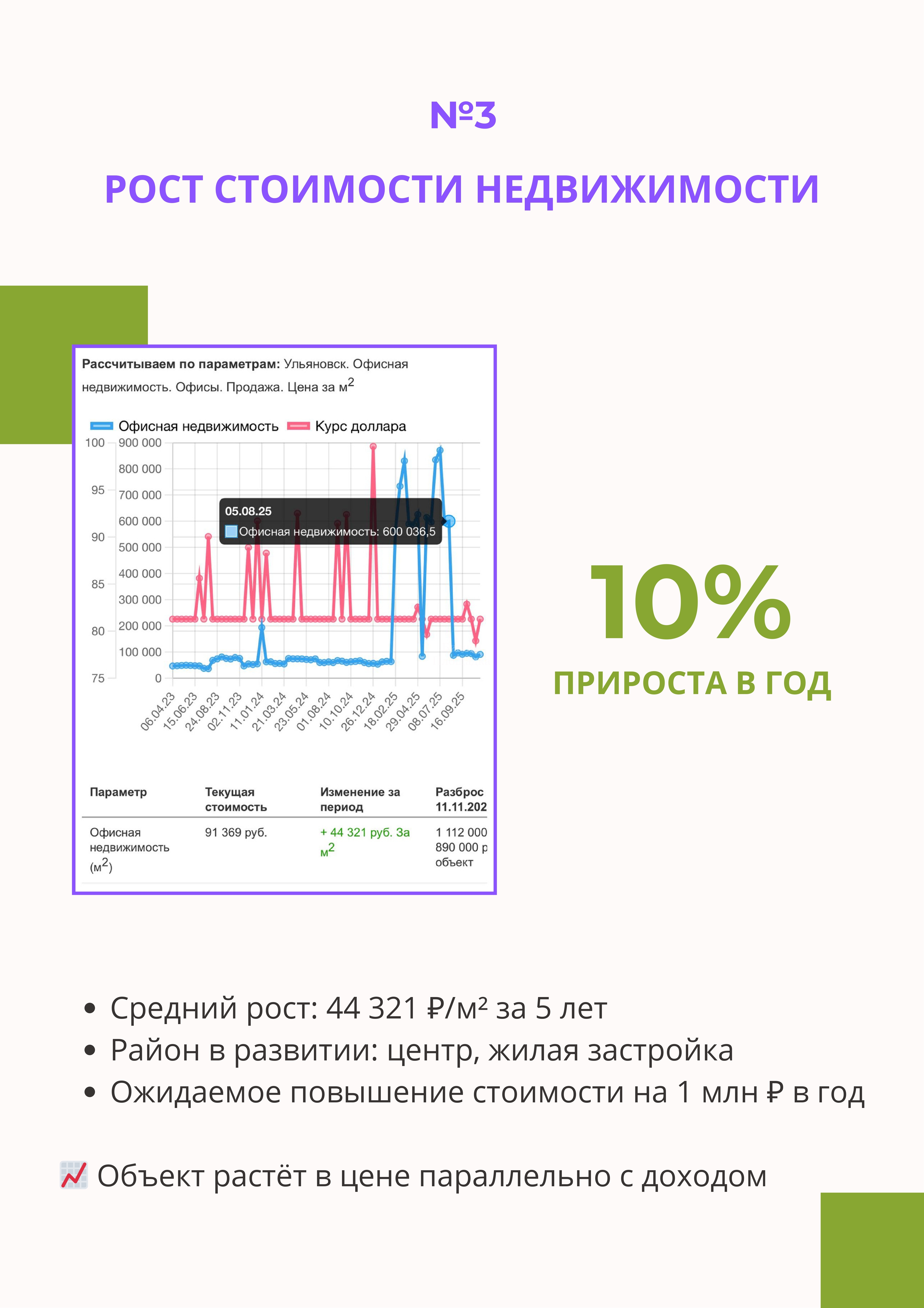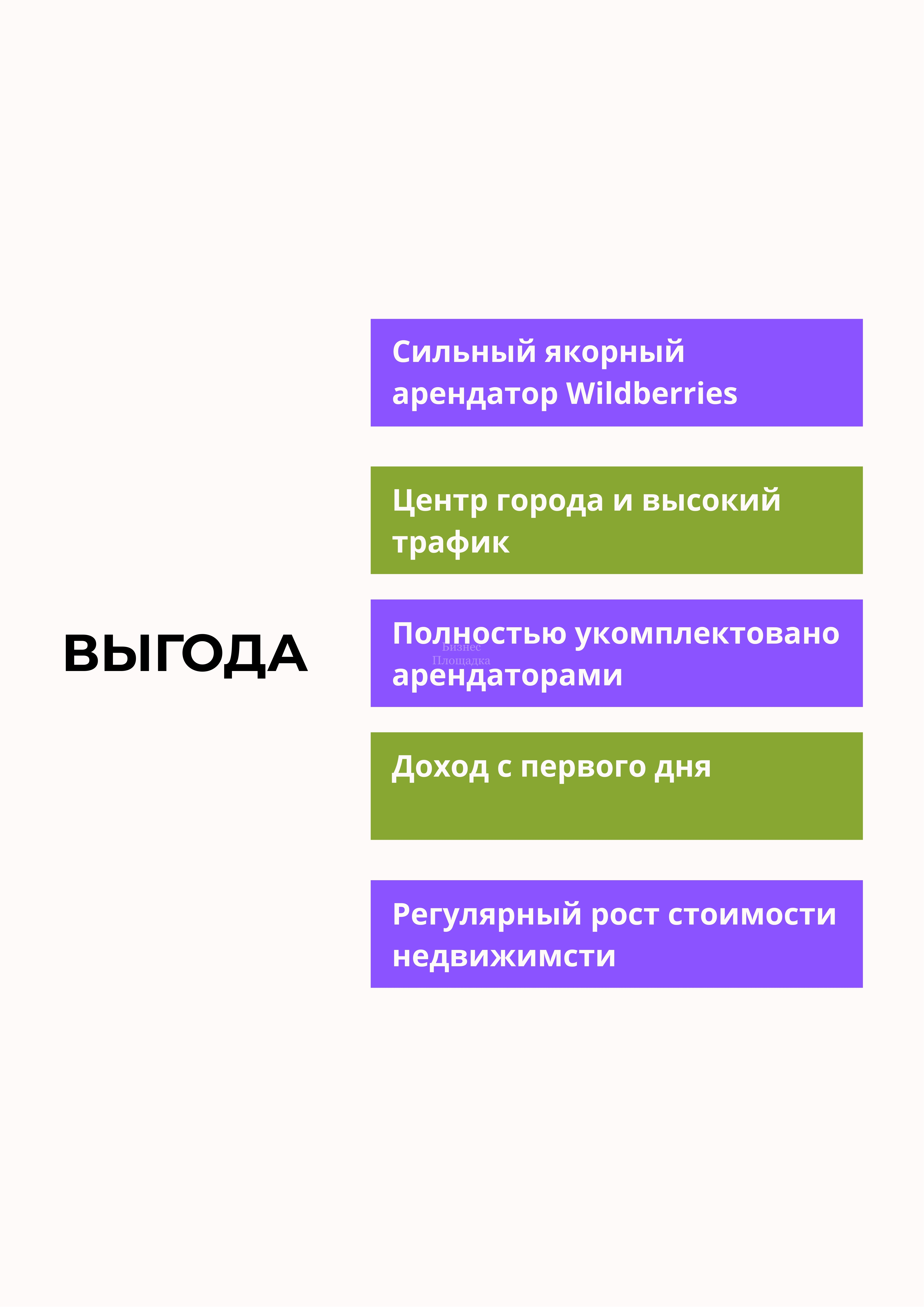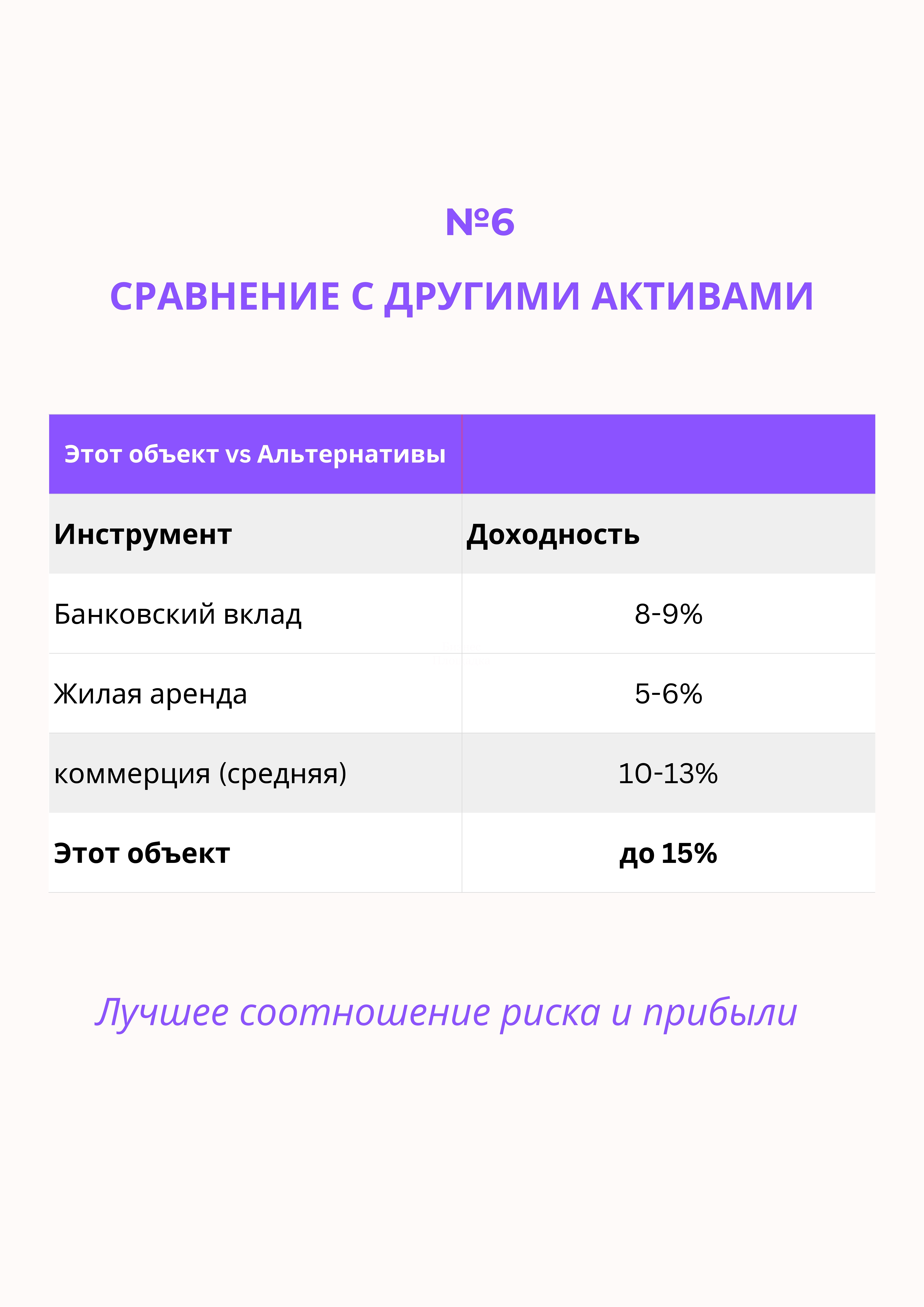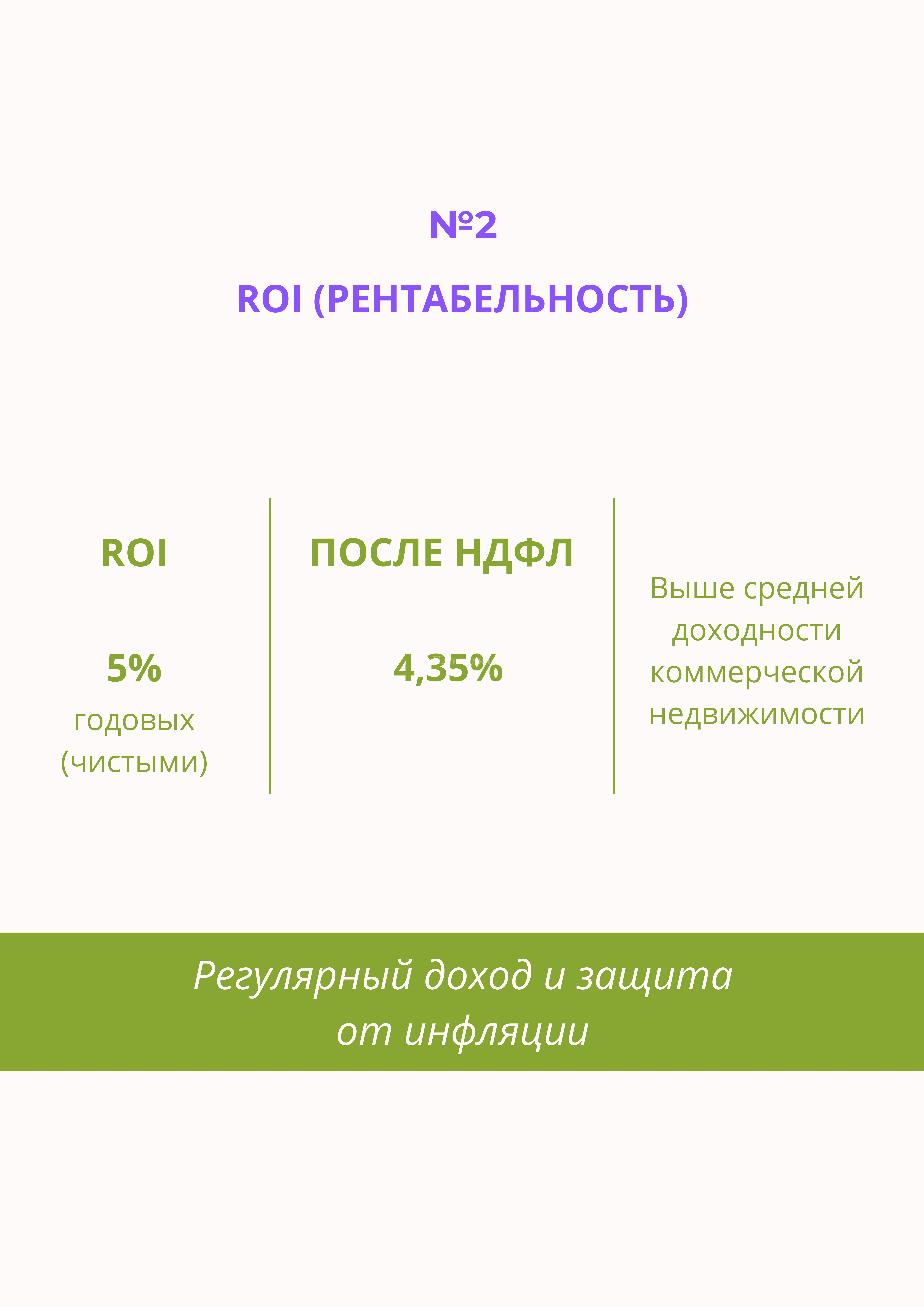 ROI 5% (рентабельность инвестиций) выше средней доходности коммерческой недвижимости