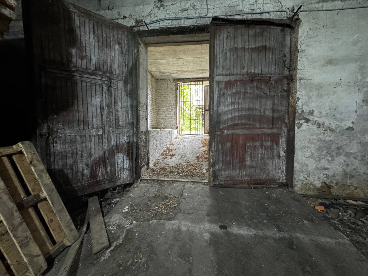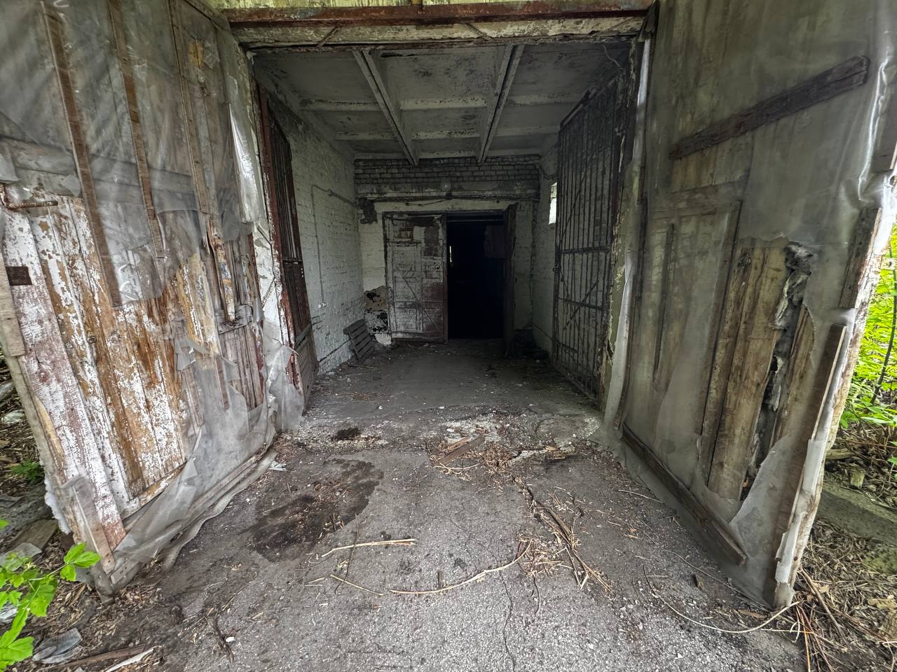 большие ворота для заезда грузового транспорта.