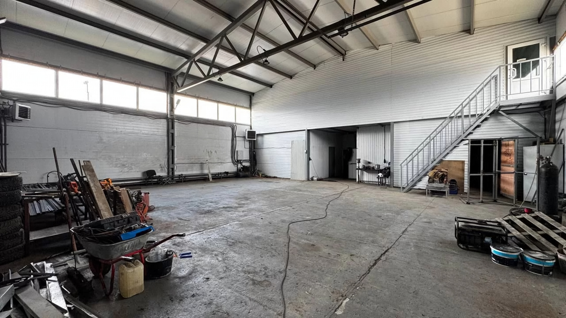- Основное производственное здание: 800 м², 1/2 этаж, потолки 7 м, открытая планировка, чистовая отделка, хороший ремонт.